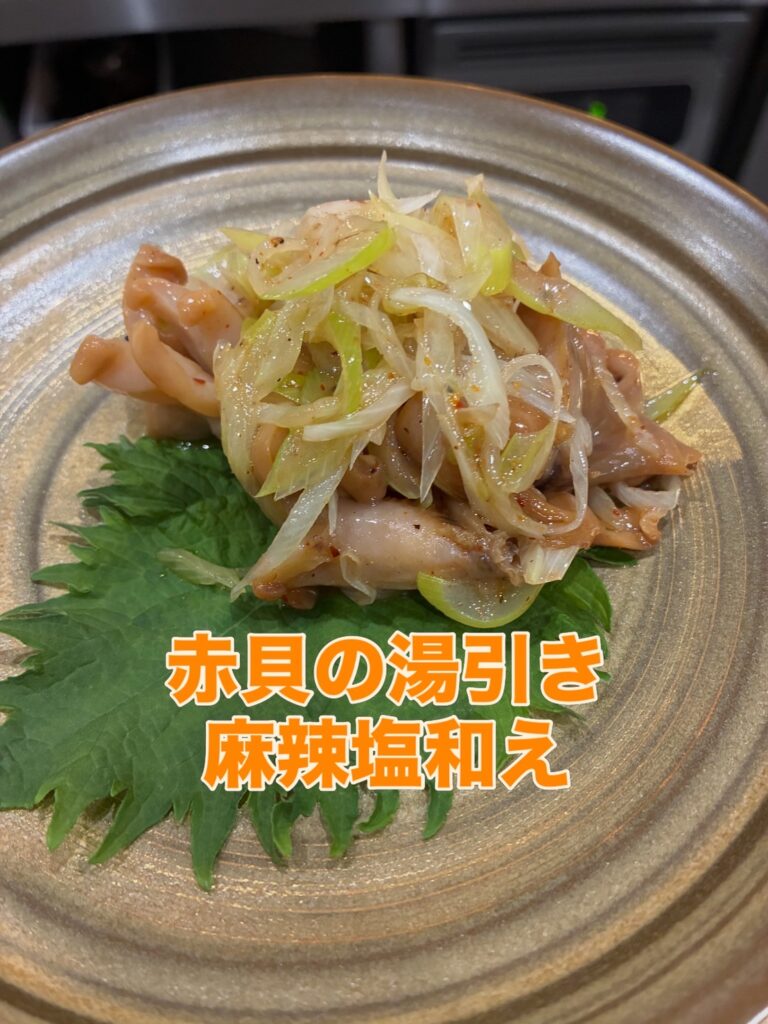 赤貝の湯引きのネギ麻辣塩あえ