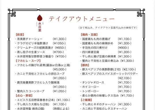 採用情報 ホーム タグ: menu 現在、アルバイトおよびパートタイムを募集しております。 □業務内容 オーダー取り 配膳・バッシング 食器・調理器具洗い 簡単な料理の盛り付け 掃除 □勤務時間 10:30〜14:30(ランチタイム) 18:00〜22:00(ディナータイム) シフト制・週2日以上応相談 □給与 時給1,200円〜能力給 エプロン貸与 投稿者 chuka.suijinsai@gmail.com 2025年1月6日グランドオープン!! 中華料理のみならず、お酒が好きな方、 落ち着いた空間で過ごしたい方、特別な日のお食事 今日は外食したい!という方など大歓迎です。 女性が一人でも入りやすいおしゃれな中国料理店です♡ 関連投稿 タグ: menu 詳細 お子さまのご入店について 2026年2月15日 0 ★ご来店可能なお子さま★ ★ご注意事項★ 最... タグ: menu コース料理 2025年8月7日 0 定番5000円コース 旬の食材を使ったコース... タグ: menu テイクアウトについて 2025年7月22日 0 当店では、営業時間内かつご予約のみテイクアウ... タグ: menu 本日のおすすめ 2025年3月30日 0 主に季節の食材を使った月替わりのメニューです... タグ: menu 豚肉料理 2024年12月30日 0 豚肉は基本、茶美豚を使用しています。 豚スペ... タグ: menu 点心・野菜 2024年12月30日 0 水井菜特製シュウマイ エビ蒸し餃子 小籠包 ... 投稿ナビゲーション 前の投稿