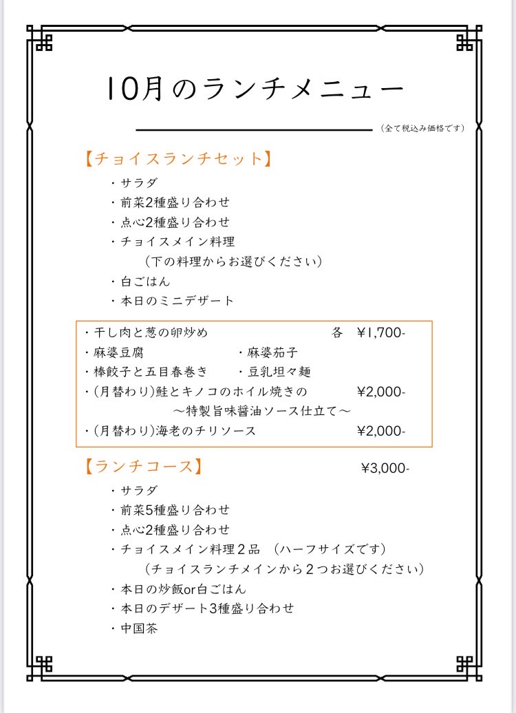 ランチメニュー ホーム タグ: 詳細 エビ料理は、奇数月がエビマヨ、偶数月がエビチリです。 Screenshot 干し肉とねぎの卵炒め 麻婆豆腐 麻婆茄子 豆乳坦々麺 エビのチリソース 投稿者 chuka.suijinsai@gmail.com 2025年1月6日グランドオープン!! 中華料理のみならず、お酒が好きな方、 落ち着いた空間で過ごしたい方、特別な日のお食事 今日は外食したい!という方などなどどんな方もお待ちしております。 女性が一人でも入りやすいおしゃれな中国料理店です♡ 関連投稿 タグ: 詳細 営業時間 2025年2月15日 0 営業時間以外は施錠しているため、ご予約いただ... タグ: 詳細 果酒・清涼飲料 2024年12月13日 0 果実酒 各税込600円 (ソーダ割り/... タグ: 詳細 ウイスキー・白酒・日本酒 2024年12月13日 0 ウイスキー 白酒 日本酒 ウイスキー ... タグ: 詳細 ビール・紹興酒・焼酎 2024年12月13日 0 shouchu タグ: 詳細 本日のシャーベット 2024年12月13日 0 税込300円 タグ: 詳細 紹興酒アイス 2024年12月13日 0 税込300円 投稿ナビゲーション 前の投稿次の投稿